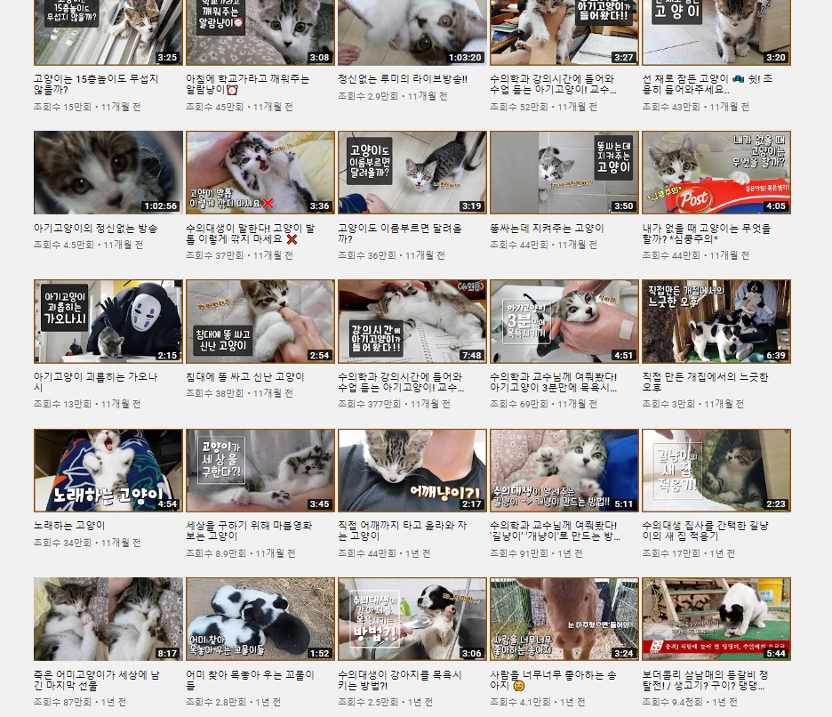 사람들의 공감대가 '고양이'에 집중되어 있고, 자신의 채널이 관심을 받았습니다.